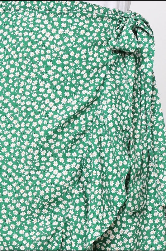 Jupe verte petite fleur blanche